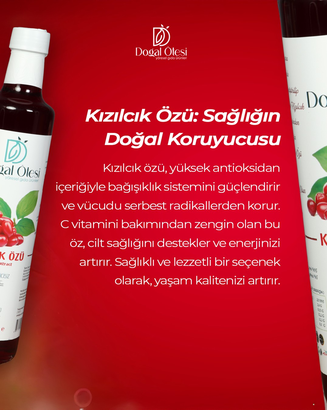 Kızılcık Özü ile enerji ve sağlık dolu bir yaşama adım atın. Her damla, doğanın gücünü size taşıyacak.