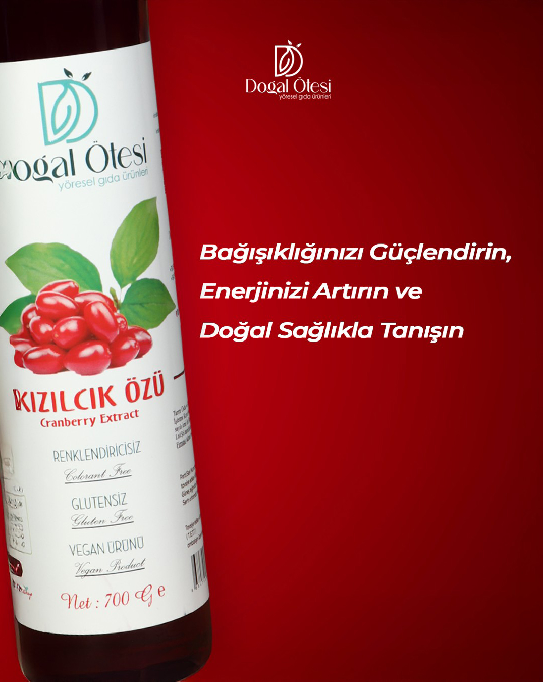 - Bağışıklık Sistemini Destekleme: Kızılcık, C vitamini ve diğer besin öğeleri açısından zengindir. Kızılcık Özü, bağışıklık sistemini güçlendirmeye yardımcı olarak hastalıklara karşı direncinizi artırabilir.